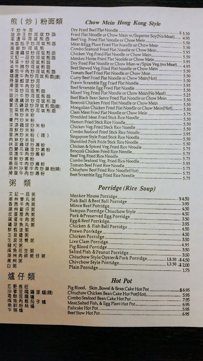 Menkee's menu is filled with comforting options that cater to both adventurous eaters and fans of classic favorites. The House Porridge is a must-try, available in varieties like Fish Ball & Beef Ball ($3.95) and Pork & Preserved Egg ($3.50), which offers a warm, creamy embrace perfect for any time of day. For those who crave something a bit heartier, the Fried Flat Noodles stand out. The Combo Seafood Fried Flat Noodle ($5.50) and Beef Veg. Fried Flat Noodle ($4.50) are packed with vibrant flavors and perfectly cooked ingredients that sing with every bite.